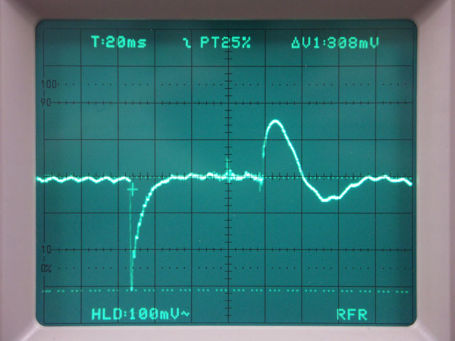 springt die Spannung um 150mV nach oben, um dann nach 20..40 ms wieder