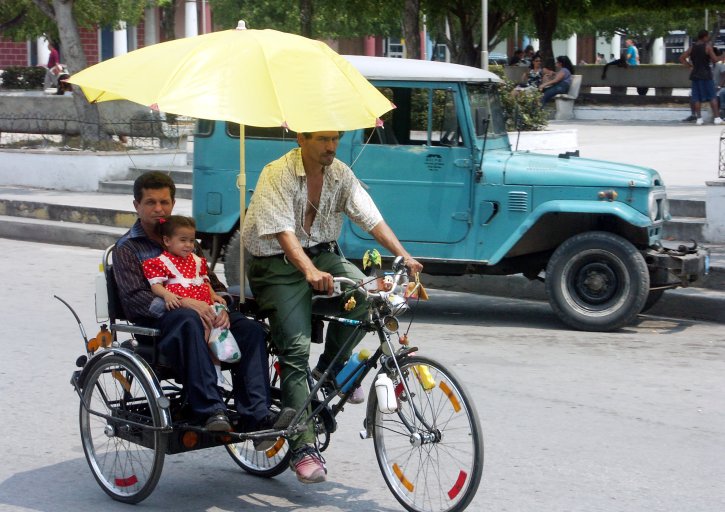 Bunte Mischung am Taxistand. Hier gibt es "Dreiräder", normale Autos und Oldtimer. |